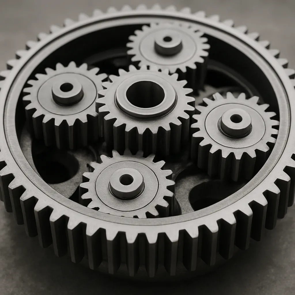 - Nosiciel planet przenosi ruch na wał wyjściowy, dostarczając zwiększony moment lub redukowaną prędkość.